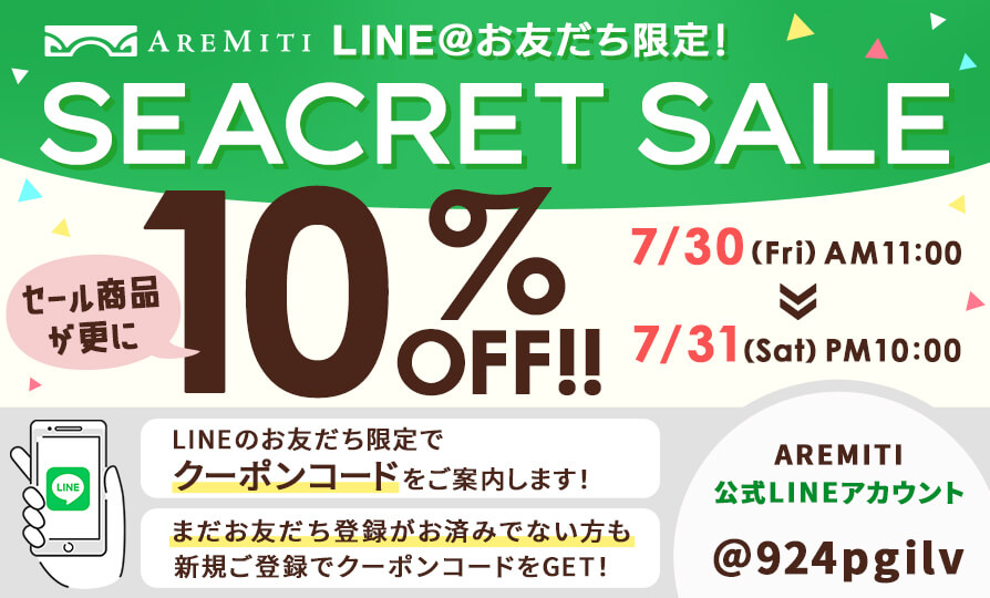 AREMITIのLINE@のお友達の皆様に、セール商品がさらに10%オフになる