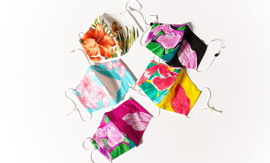 ハワイ生地で作ったとっても華やかなマスクです!何度も洗って使えるのも嬉しいポイントですね。
